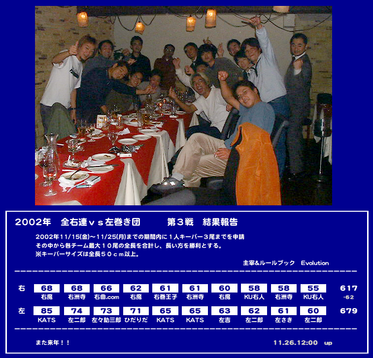 | ガチンコ戦 | 11月18日 〜 11月25日 | 湾奥・横濱各地 | 全右連圧勝! | 詳細 | 2002 |