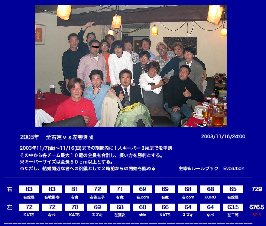 | 親善試合 湾奥戦 | 10月7日 | 湾奥某所 | 左巻団勝利... | 写真 |