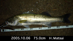 | 〃 | 右 | H.Matsui | 75.0cm | タイド140アルミイワシ | 10/6 | 岡山県高梁川 | ● |