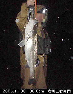| 〃 | 左 | 左羅裏威萬 | 76.0cm | ダンシングミノー | 11/2 | 東京湾奥 | |